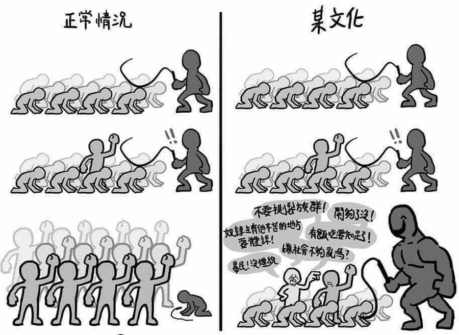 中国人知道自己是卑劣的奴隶,如果有人按照他们真实的阶级身份对待他们,他们就会暗中佩服,觉得这些人有眼力,对其他事情的判断,大概也没错。如果有人尊重中国人,把他们当做有灵魂有良知有廉耻的生物,中国人根据同样的理由,就会怀疑这些人的判断力,包括对其他跟中国无关事情的判断力,不但不会信任和追随这些人,反而会觉得这些人是适合欺骗掠夺的对象。
